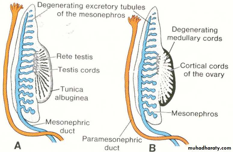 • The primitive sex cords dissociate forming degenerating medullary cords which disappear and replaced by vascular stroma (ovarian medulla).