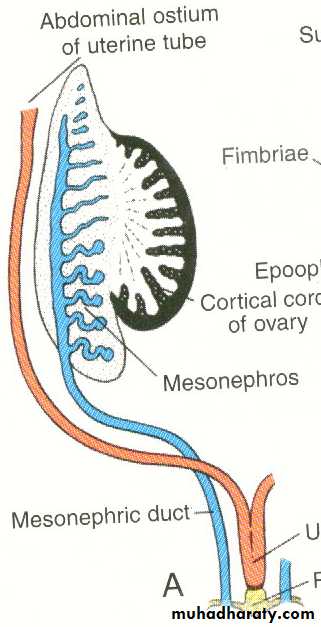 In the female :• The cranial vertical part : form uterine tube with its cranial end opening into the coelomic cavity