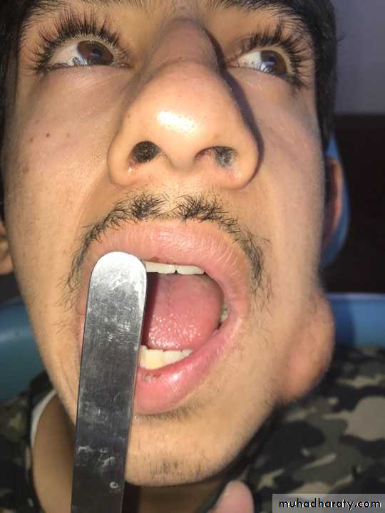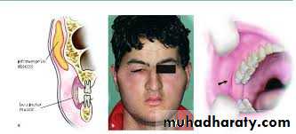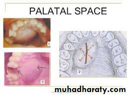 Infections spread from infected upper molar teeth where it spreads buccally above the attachment of Buccinator muscle. This space is already discussed.• Sub periosteal abscess in the palate: