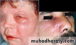 The swelling is lateral to the nose leading to obliteration of the nasolabial fold and may lead to periorbital cellulitis, there is risk of cavernous sinus thrombosis.