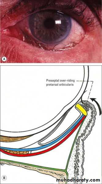 Causes : scarring to the lid margin e.g. trachoma, trauma, chronic blepharitis.