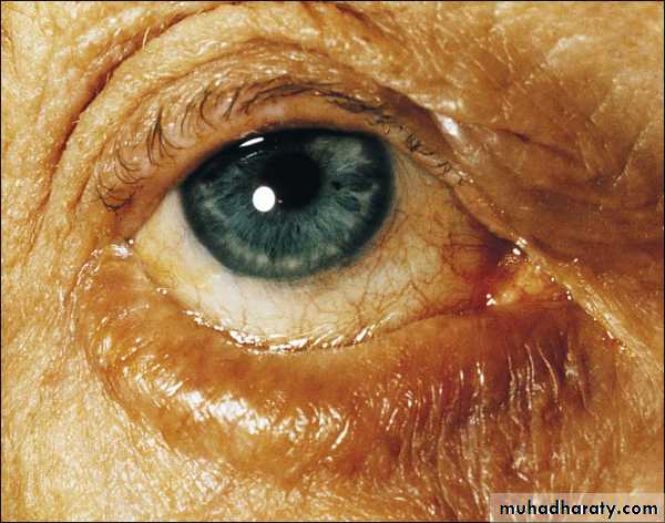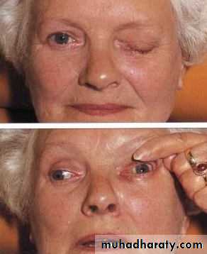 Senile; Due to weakness of Orbicularis oculi muscle .
