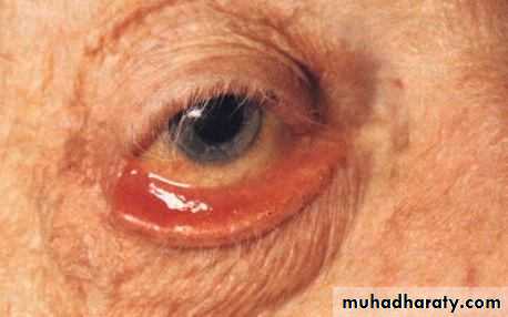 Stye (External hordeolum) :Acute Staphylococcus infection of a eyelash hair follicle or one of the associated glands.