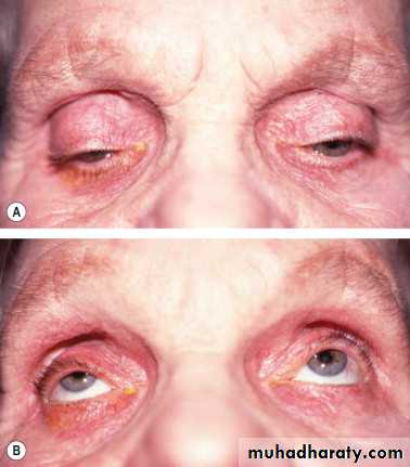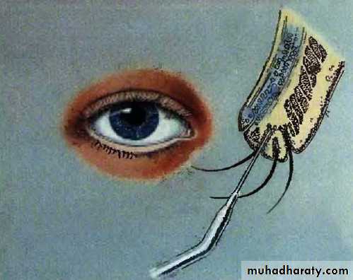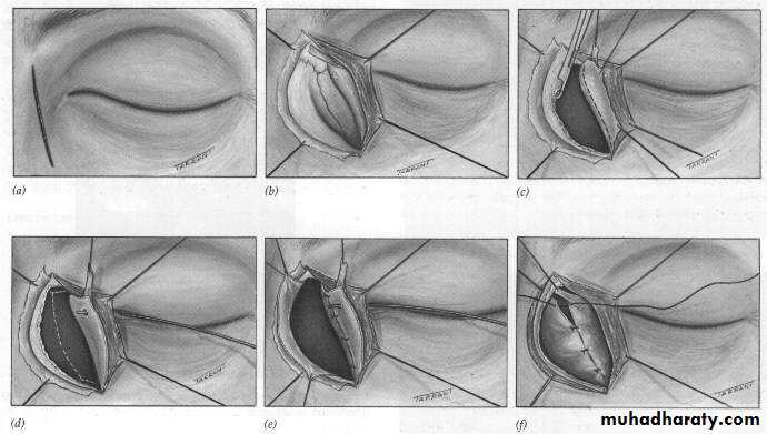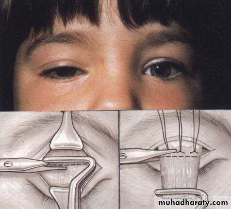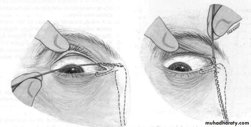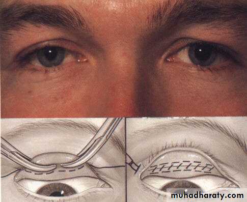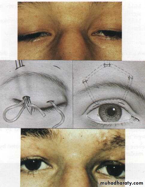 b- Frontalis brow suspension (Sling operation).c- Mullerectomy (resection of Muller muscle).