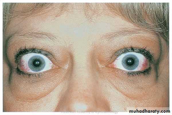 In Dysthyroid OphthalmopathyOver-exposure of the eye, the sclera is exposed at the upper and lower limbus.