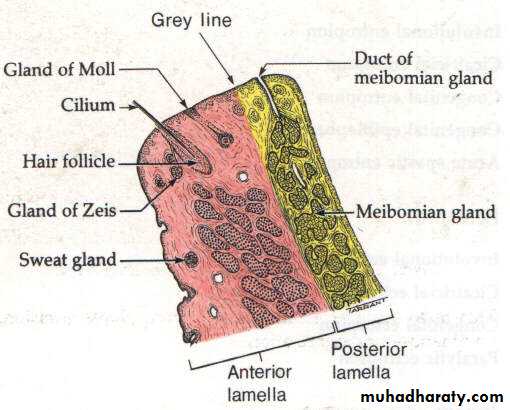 is 2mm muco-cutaneous junction,contains :Posteriorly the opening of meibomian glands and the upper and lower lacrimal puncti.