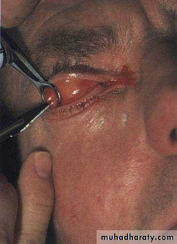 Chronic lipogranulomatous inflammation of a meibomian secondary to retention of sebum .Clinical features; painless swelling within the lid .