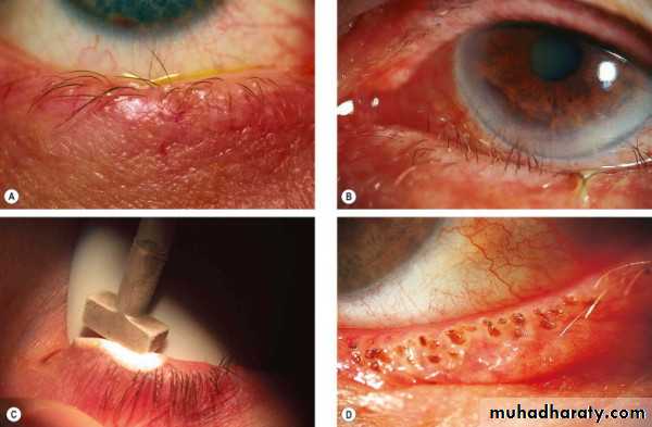 Clinical featuresChronic irritation, foreign body sensation and recurrent conjunctivitis