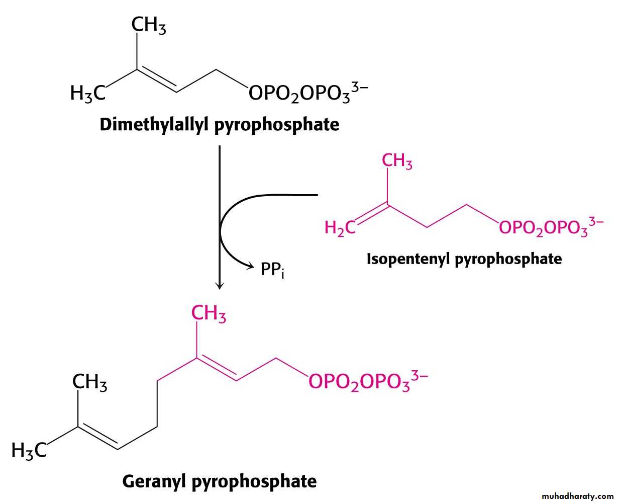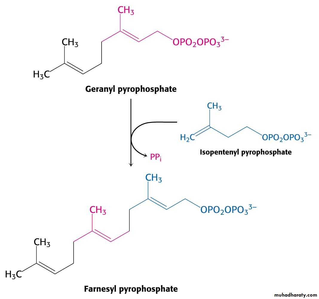 C10 compound geranyl pyrophosphate reacts with C5 units isopentenyl pyrophosphate and C15 compound is formed - farnesyl pyrophosphate.