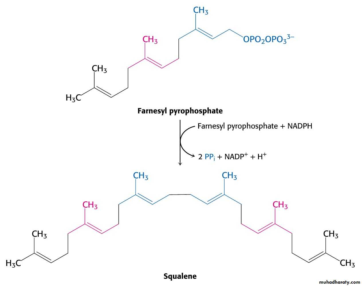 Reductive tail-to-tail condensation of two molecules of farnesyl pyrophosphate results in the formation of C30 compound squalene