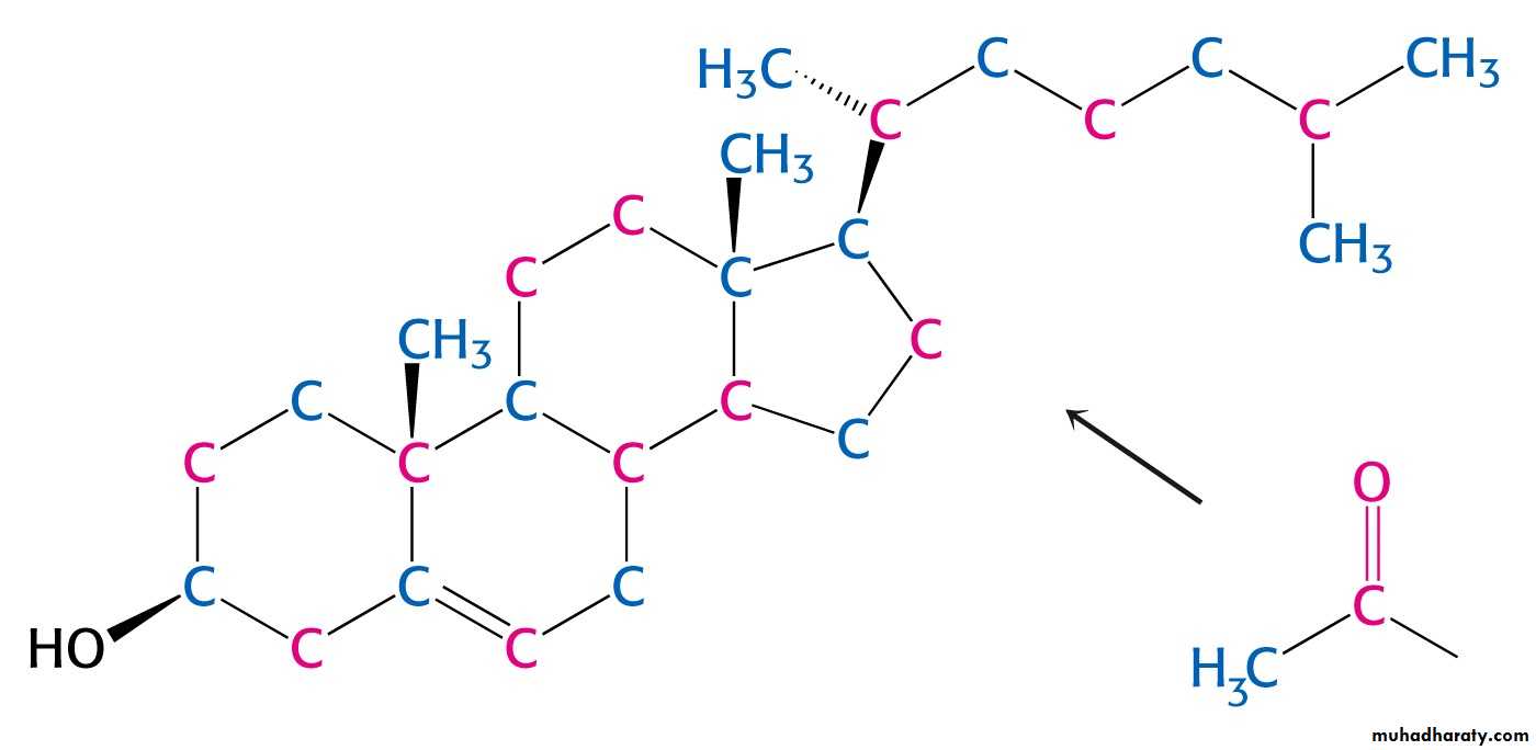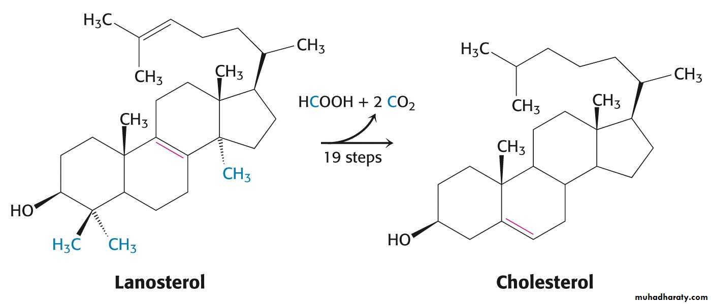 Three stages of cholesterol biosynthesisAcetyl CoA (C2) Isopentenyl pyrophosphate (C5)