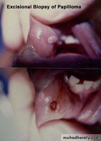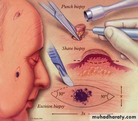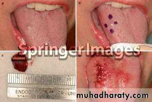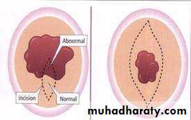 • a.Excision Biopsy ;When the lesion is small, it should be totally excised.