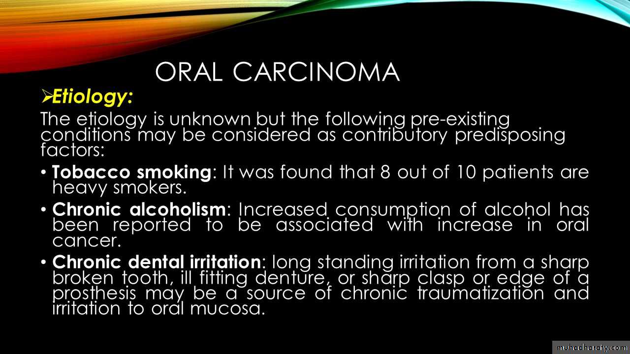 • Poor Dental Hygiene and Constant Chronic Trauma to Mucosa Due to Dental Cause Poor oral and dental hygiene, sharp teeth, ill fitting dentures, sharp crown and bridges, etc…