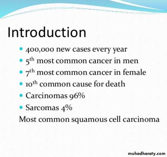 • Squamous cell carcinoma. Most common type (90-95 % )• Melanoma