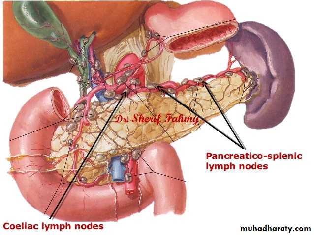 Postoperative complications: Local: Iatrogenic injury to adjacent organs; like § 1- Pancreas; may lead to: § Pancreatitis § Local abscess § Pancreatic fistula 2- Stomach; a fistula may result from damage to the greater curvature during ligation of short gastric vessels. 3- Colon, splenic flexure