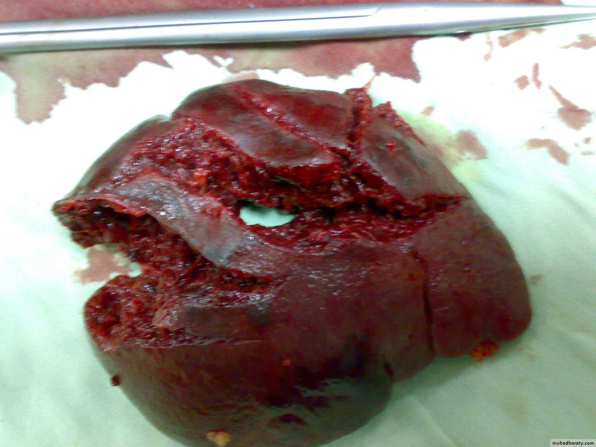 Complications: Rupture: Subphrenic abscess Peritonitis Diagnosis: Ultrasound CT scan Treatment: Underlying cause drainage