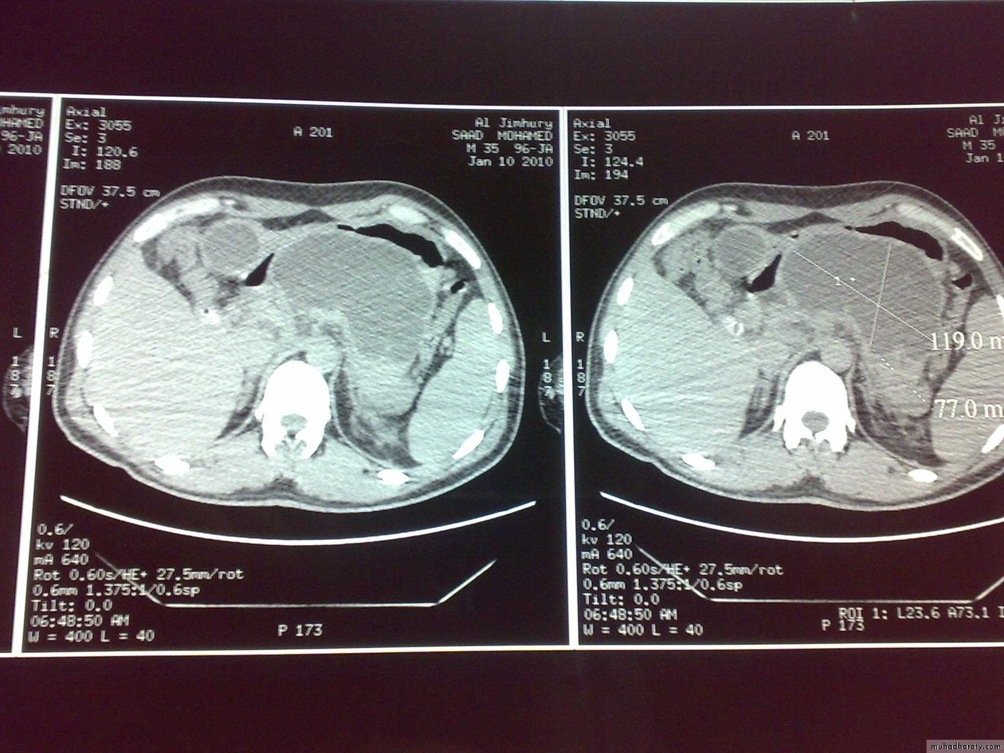 PANCREATIC PSEUDOCYST COLLECTION OF PANCREATIC SECRETION &INFLAMMATORY EXUDATE WITHIN A LINING OF INFLAMMATORY TISSUE AETIOLOGY DEVELOPS IN 10% OF CASES OF ACUTE PANCREATITIS AFTER 4 WEEKS.NEXT CAUSE PANCREATIC TRAUMA SITE LESSER SAC COMPLICATIONS INFECTION ,HAEMORRHAGE,RUPTURE CLINICAL FEATURES -SMALL PAINLESS DISCOVERED BY U/S -LARGE CAUSE DISCOMFORT ,UPPER ABD. SWELLING INVESTIGATIONS -BA-MEAL FORWARD DISPLACEMENT OF STOMACH -U/S&CT