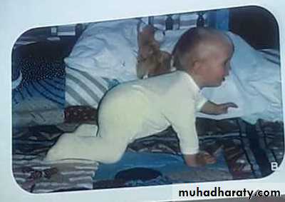 Head lag disappear and the head perpendicular to body 4 months
