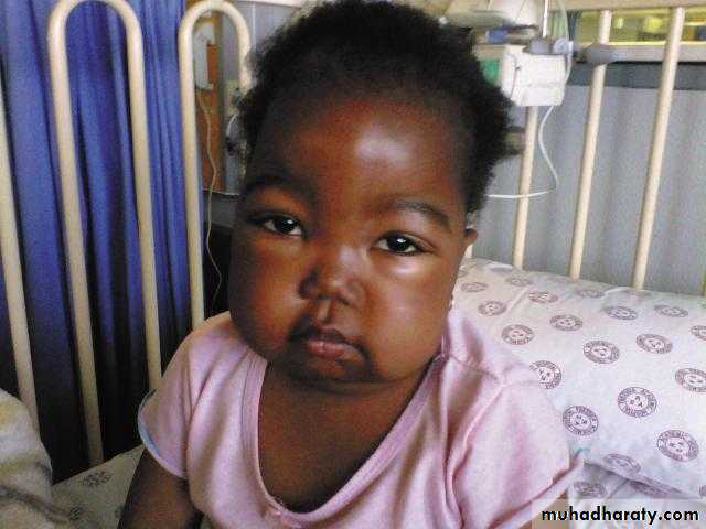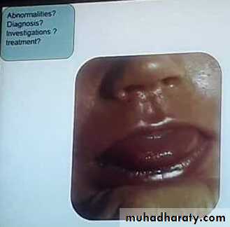 Maxilary hypertrophy , paller , browns discoloration below eye lids