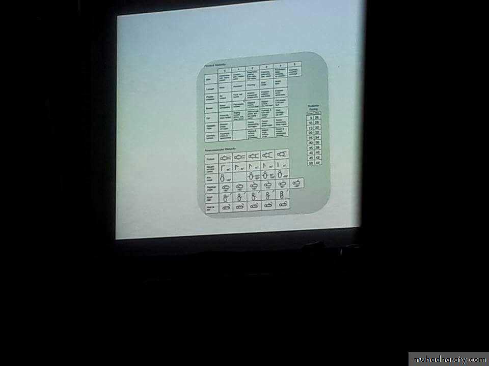chart of physical and neuromuscular maturity of premature baby