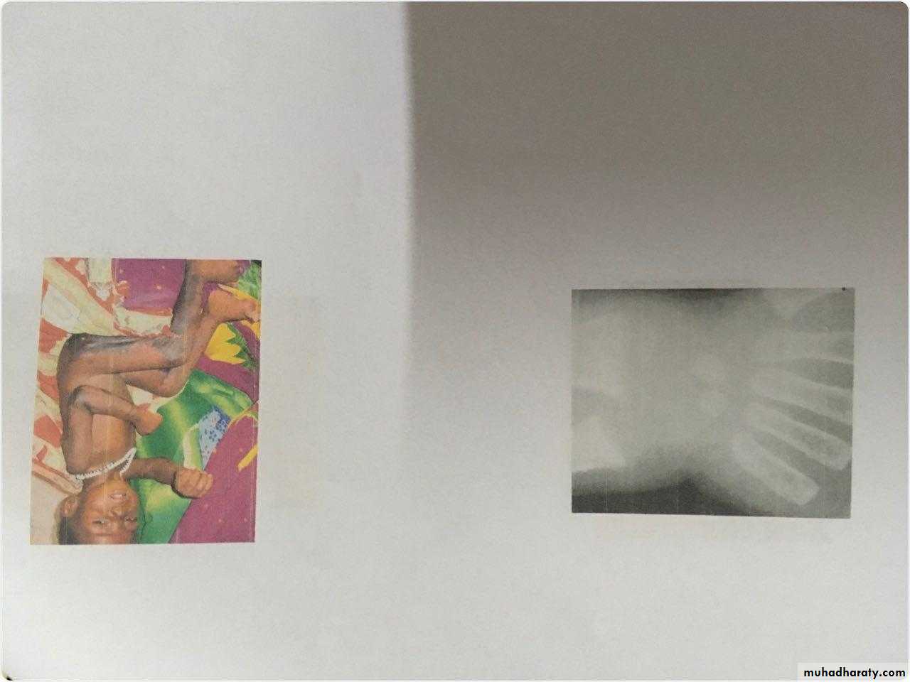 X ray of wrist showing cupping fraying splaying
