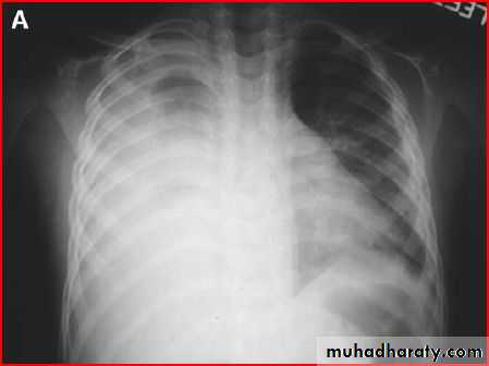 Opacification of whole lt. hemithorax consolidation of pneumonea but no pleural effusion b.c there is free costophrenic angle