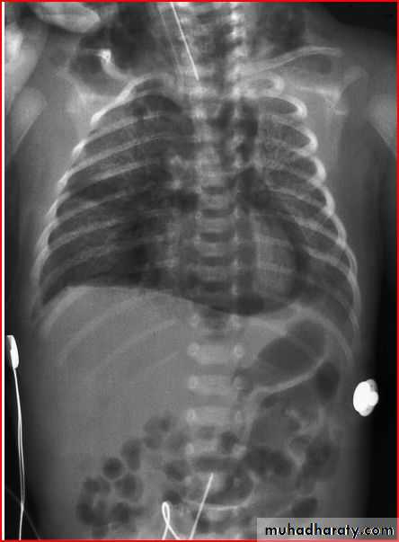 Rx >> endotracheal tube and o2 and NG tubeDiaphramatic hernea and endotracheal tube