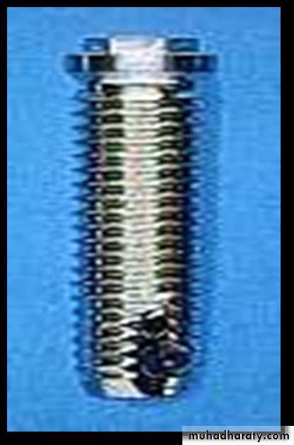 • Ti-6Al-4V most commonly used. Modulus of elasticity of (Ti-6Al-4V) is closer to that of bone than any other implant material. This ensures a more uniform distribution of stress along the bone-implant interface.• Newer titanium alloys developed include (Ti-13Nb-13Zr) and (Ti-15Mo-2.8Nb) which exhibit greater corrosion resistance.