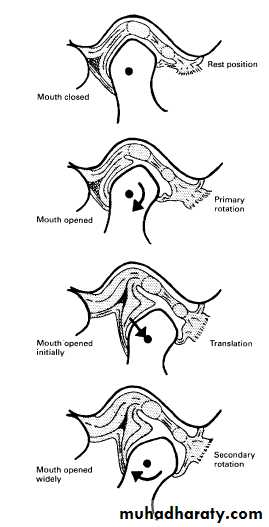 Diagrams showing the rotary and translatory movements of the condyle during normal mouth opening.