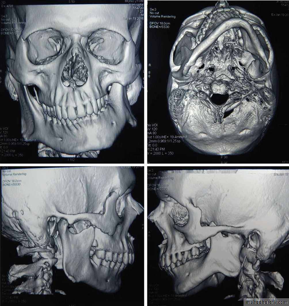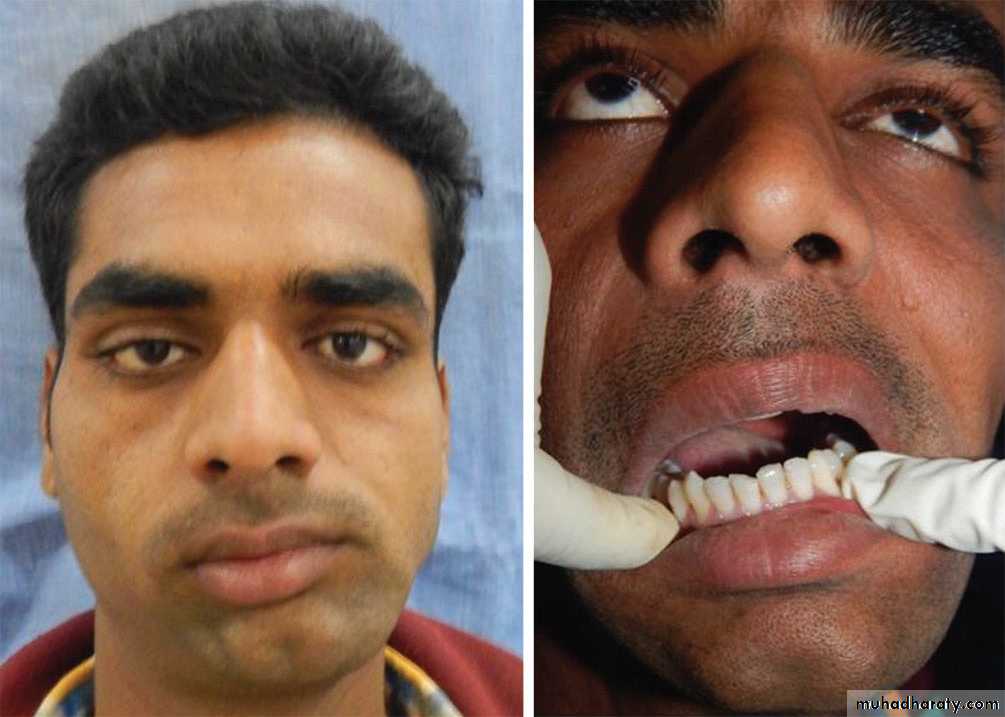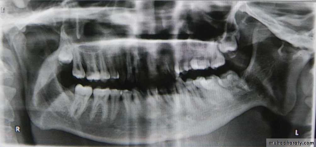 • Ramus and mandibular body on the affected side also may be enlarged, resulting in a characteristic depression of the inferior mandibular border, increased vertical dimension of ramus and may be thicker in the anteroposterior dimension.