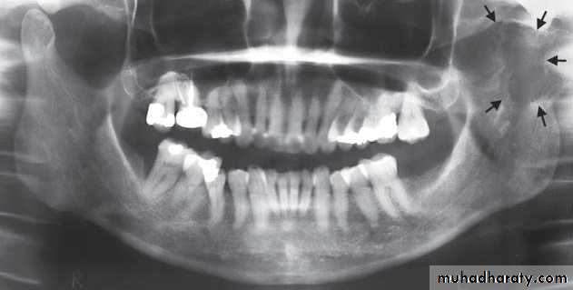 • Treatment: Surgical excision of tumor and occasionally excision of condylar head or coronoid process.