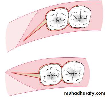 Treatment of periodontal pockets on the distal surface of terminal molars is often complicated by the presence of bulbous fibrous tissue over the maxillary tuberosity or prominent retromolar pads in the mandible. Deep vertical defects are also often present in conjunction with the redundant fibrous tissue. Some of these osseous lesions may result from incomplete repair after the extraction of impacted third molars .The gingivectomy incision is the most direct approach in treating distal pockets that have adequate attached gingiva and no osseous lesions. However, the flap approach is less traumatic postsurgically because it produces a primary closure wound rather than the open secondary wound left by a gingivectomy incision.