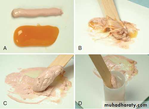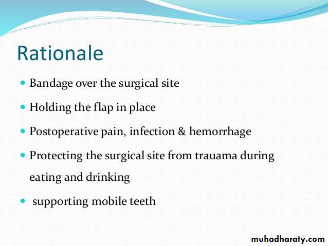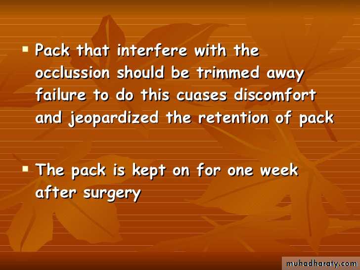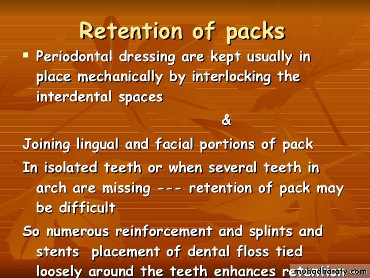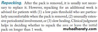 Inserting the periodontal pack. A, Strip of pack is hooked around the last molar and pressed into place anteriorly. B, Lingual pack is joined to the facial strip at the distal surface of the last molar and fitted into place anteriorly. C, Gentle pressure on the facial and lingual surfaces joins the pack interproximally.