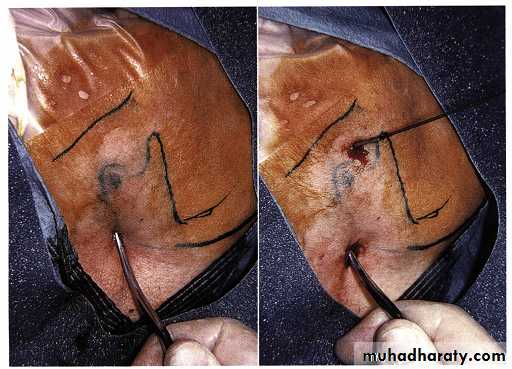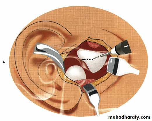 A, Initiating osteotomy of articular eminence with 1-mm fissure bur. Approximately 90% of the cut is performed with the bur.