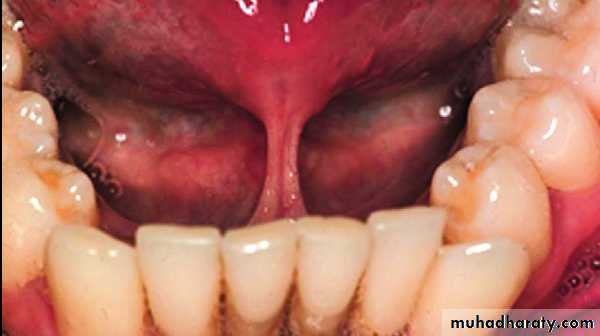 Periodontal problems associated with a high lingual frenum, resulting in direct trauma and poor oral hygiene.
