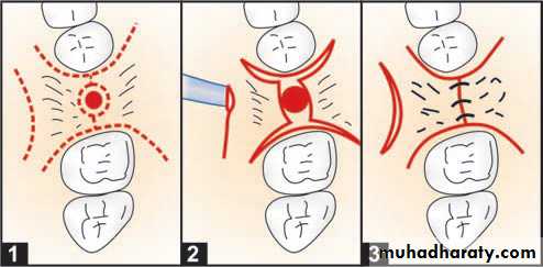 • The buccal flap is so designed, that the base should be wider than the apex; to ensure adequate vascularization at the apex.