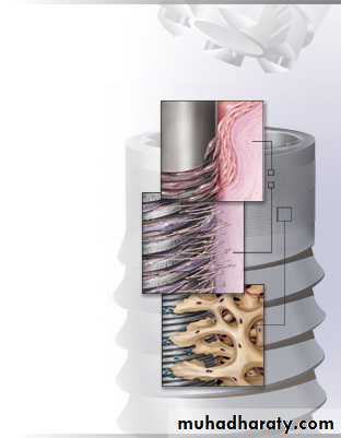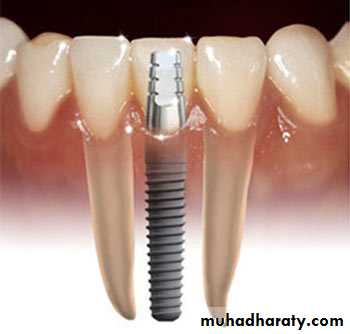 Most commonly used biomaterials for implants:1- Commercially pure (CP) titanium2- Titanium-aluminum-vanadium alloy (Ti-6Al-4V)3- Cobalt-chromium-molydenum (Co-Cr-Mo) alloy is most used for subperiosteal implants.4- Calcium phosphate ceramics, Hydroxyapatite (HA), used for augmentation material or coating on surface.• Made of a titanium screw either having a rough or smooth surface