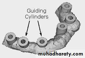 • Holes are drilled through the temporary stent. This is done ensuring that the drill used is held vertical to the crest of the ridge and parallel from one hole to the other.