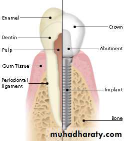 • A dental implant designed to replace a single tooth is composed of three parts:• The titanium implant that fuses with the jawbone ( fixture).