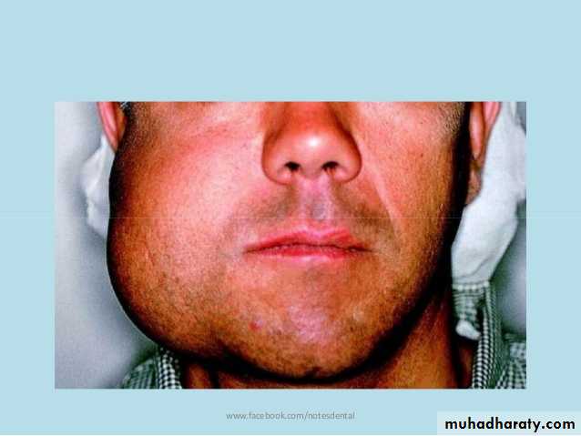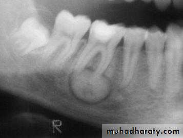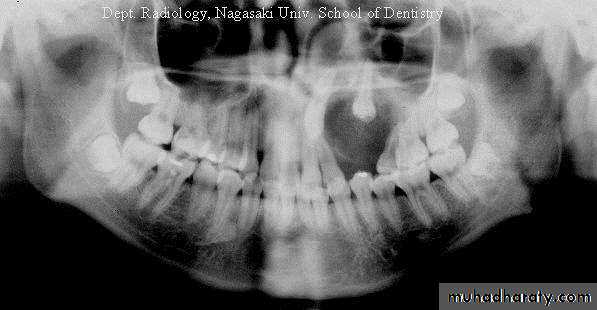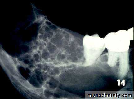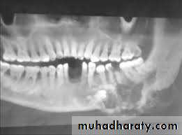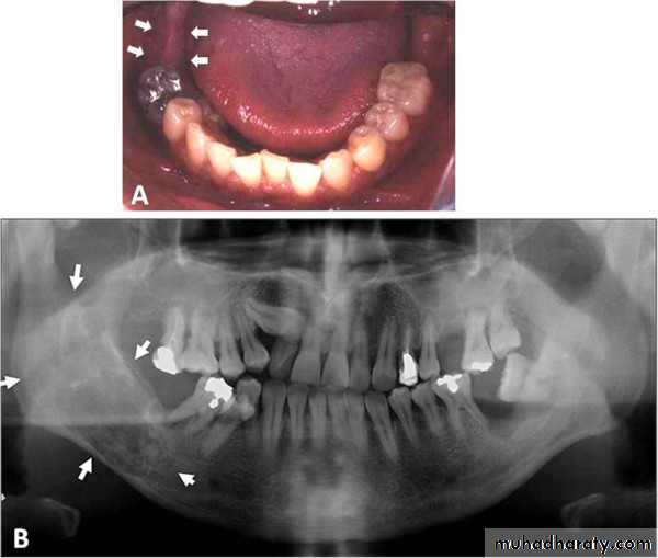 Clinical features: Slow – growing usually central jaw lesion. Painless- unless infected. Expands bone (expansion of buccal and lingual plates) - locally infiltrative and erodes cancellous bone.
