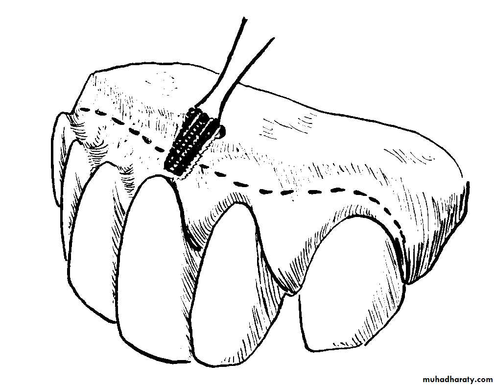 Intraseptal alveolectomy and cortical plate in-fracture:• - Buccal or Labial Cortical Recontouring: