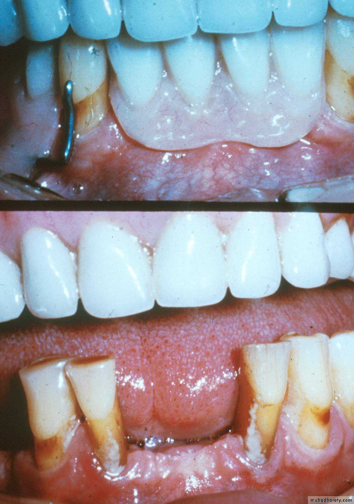 A removable partial dent. can serve as an interim prosthesis to which artificial teeth will be added as natural teeth are lost.A transitional denture may become an interim complete dent. when all of the natural teeth have been removed from the dental arch.