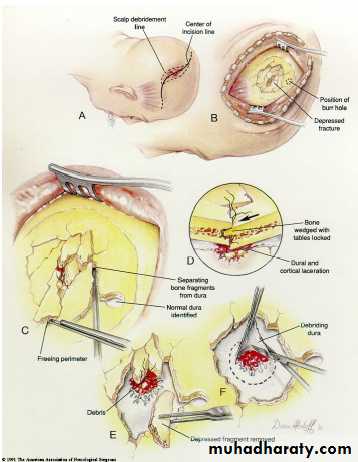 Depressed(replacement as a cranioplasty if not infected, otherwise good debridement and craniectomy
