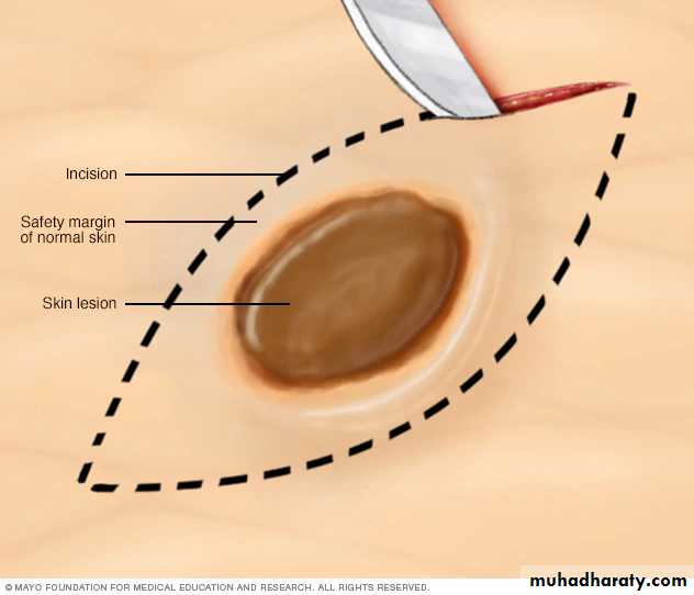 Incisional biopsy should not be performed on either pigmented or vascular lesions melanomas are highly metastatic and so pigmented lesions should be excised with a generous margin of macroscopically normal tissue around and beneath them, a clinical diagnosis of hemangioma can often be confirmed by the aspiration of blood from the lesion into a glass syringe via a wide- bore needle