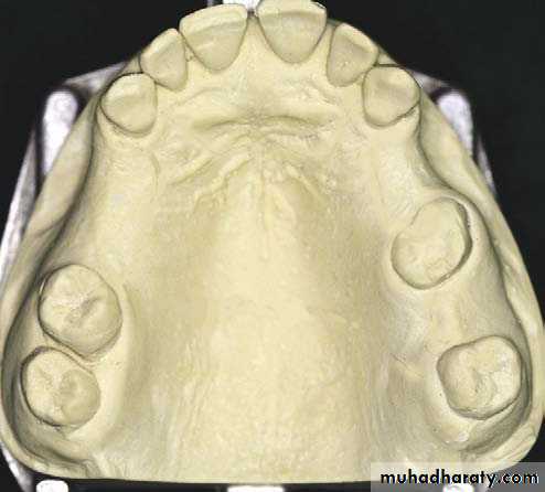 • Class IV: A single, but Bilateral (crossing the midline), edentulous area located anterior to the remaining natural teeth.