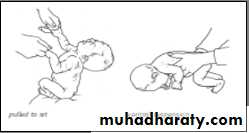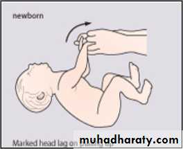 Supine: Tonic neck posture predominates; head lags when pulled to sitting position
