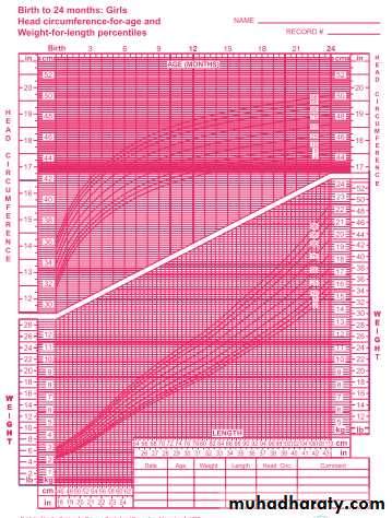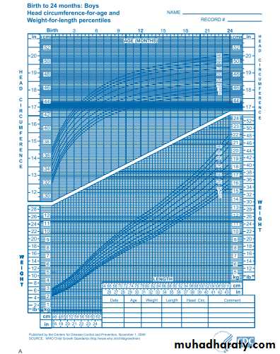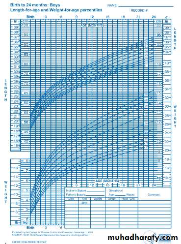 Growth is assessed by plotting accurate measurements on growth charts (Centers for Disease Control ”CDC” charts) and comparing each set of measurements with previous measurements. Measurements are plotted
