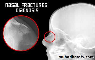 1- Lateral views of nasal bone, 15 or 30 degree occipitomental projections can be taken.2- CT scan for higher level of nose fractures.