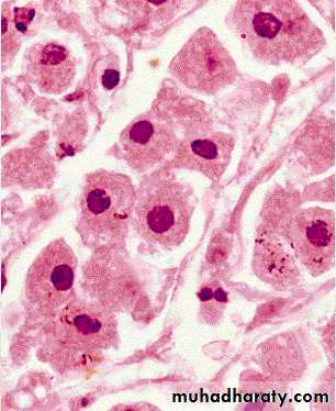 Liver cell necrosis: Nuclear changes