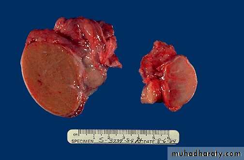 pathological hypertrophy due to increase demand, this results in increase in the size of the organOn the left is a normal testis. On the right is a testis that has undergone atrophy